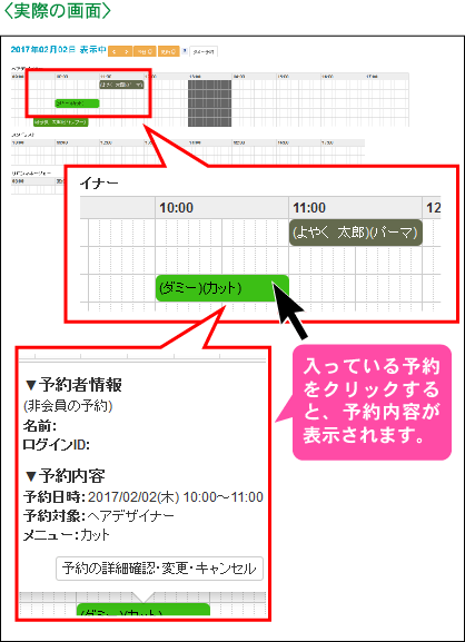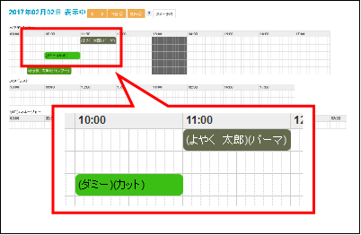 受付けた予約がタイムテーブル上に表示されます。