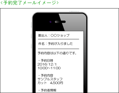 予約が入った際に、お客様には予約完了メールが、管理者様には予約通知メールが自動で配信されます。