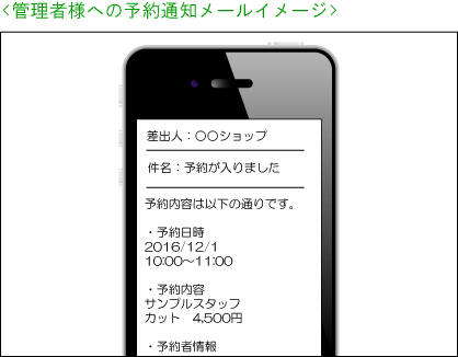 予約が入った際に、管理者様宛てに送られる通知メールです。