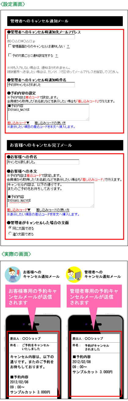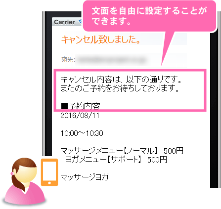 お客様、または管理者が予約のキャンセルを行った際にキャンセル通知メールを自動で配信します。