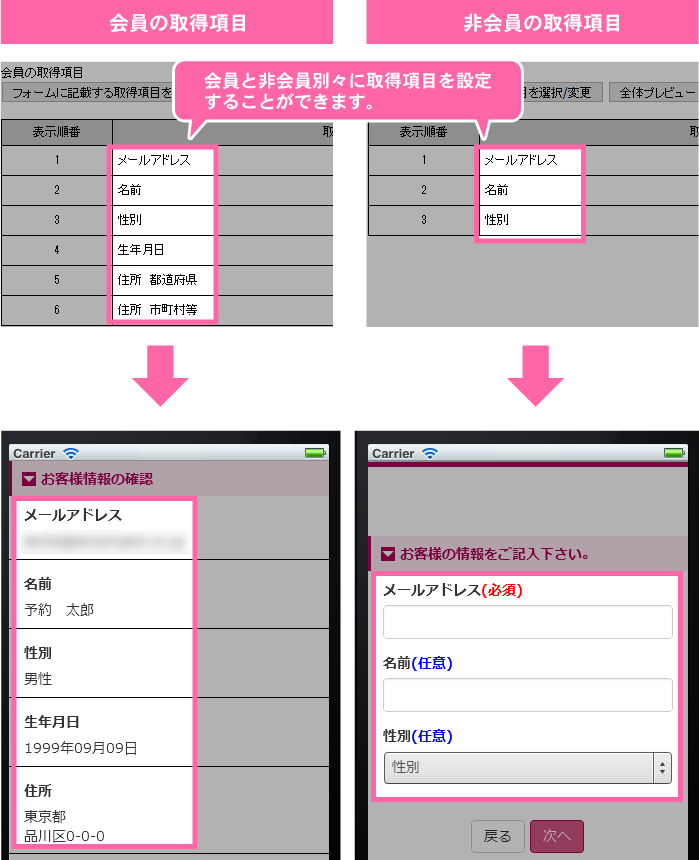 非会員には入力項目を少なくし、予約数を伸ばすなどの措置が行えます。
