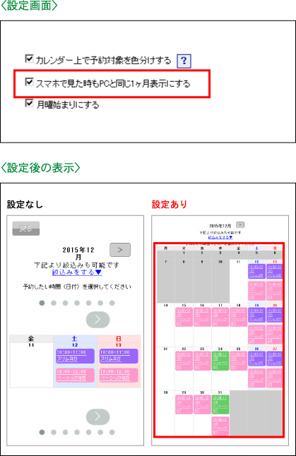 【スマホで見た時もPCと同じ1ヶ月表示する】設定