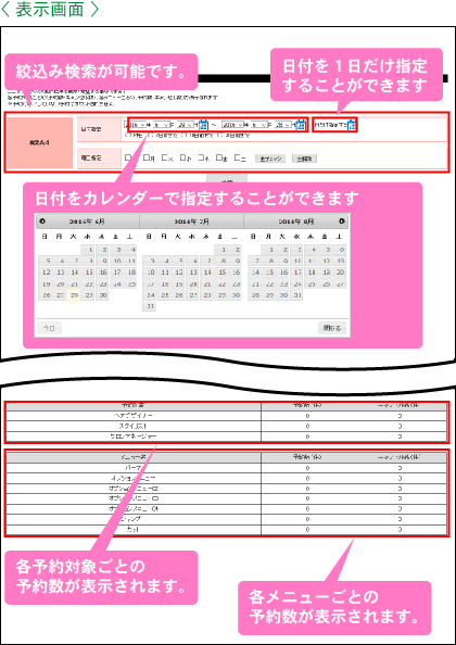 機能一覧 予約の集計結果 各予約対象の「予約数」「キャンセル数」、メニューごとの「予約数」「キャンセル数」が表示されます。特定の期間や、曜日で絞込んでの結果表示も可能です。カレンダーを使用した期間の指定も可能です。 まずは使ってみてください! 予約システム利用までの流れ ご利用店舗様 お客様の声 資料ダウンロード 初期設定サポート 代理店制度 FAQ セキュリティーへのこだわり 初心者の方にもやさしい安心サポート