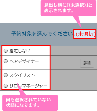 見出し横に「(未選択)」と表示され、選択肢は何も選択されていない状態になります。