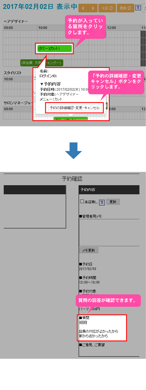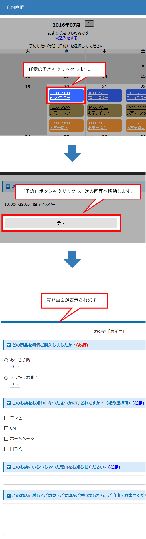 ※管理画面の「リアルタイム予約・変更・キャンセル」から予約を入れる際も質問に回答することが可能です。
