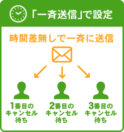 一斉送信とは、キャンセル待ちの順番に関わらずメールを一斉に送信する設定です。