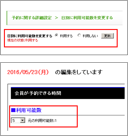 機能一覧 日別に利用可能数を変更する 各対象ごとに特定の日時の予約受付できる人数を変更することができます。 例えば担当者Aさんの23日の利用可能数を「5」に変更した場合、対象Aさんのみ23日に5件受付を可能にすることが可能です。 まずは使ってみてください! 予約システム利用までの流れ ご利用店舗様 お客様の声 資料ダウンロード 初期設定サポート 代理店制度 FAQ セキュリティーへのこだわり 初心者の方にもやさしい安心サポート