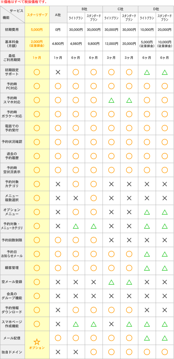 プラス2,000円(税抜)にてスターリザーブをご利用いただけます。