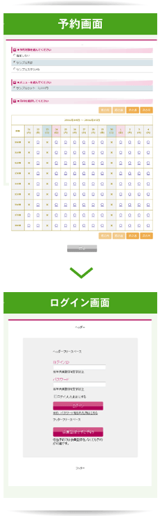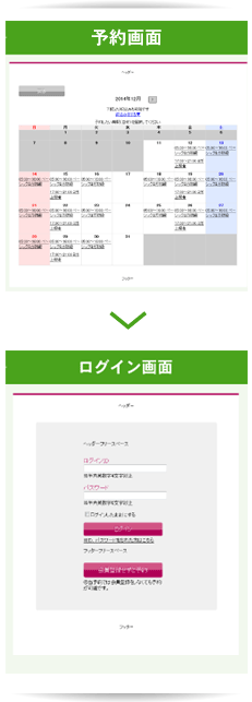 従来の予約の流れでは、マイページのログイン画面を経由してから予約画面に移動しますが、この方法では、どの日に予約を入れることができるかを確認後に予約を入れることができます。